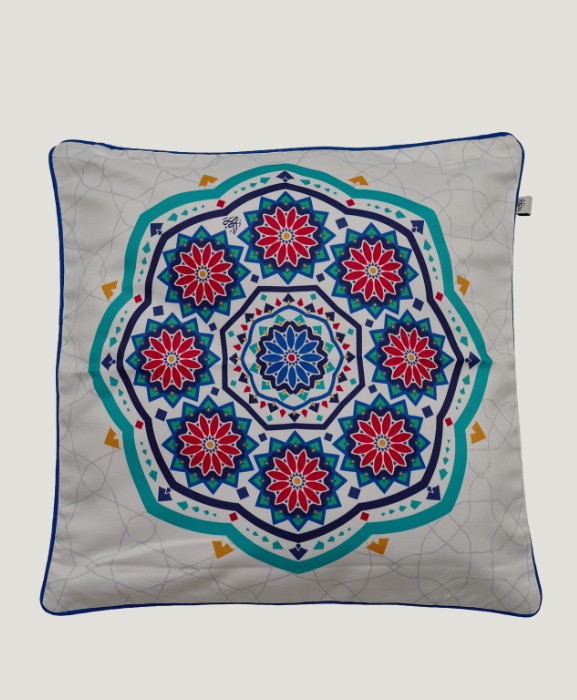 Serat Double face statement printed cushion cover designed with a colourful pattern.