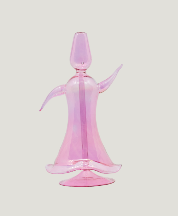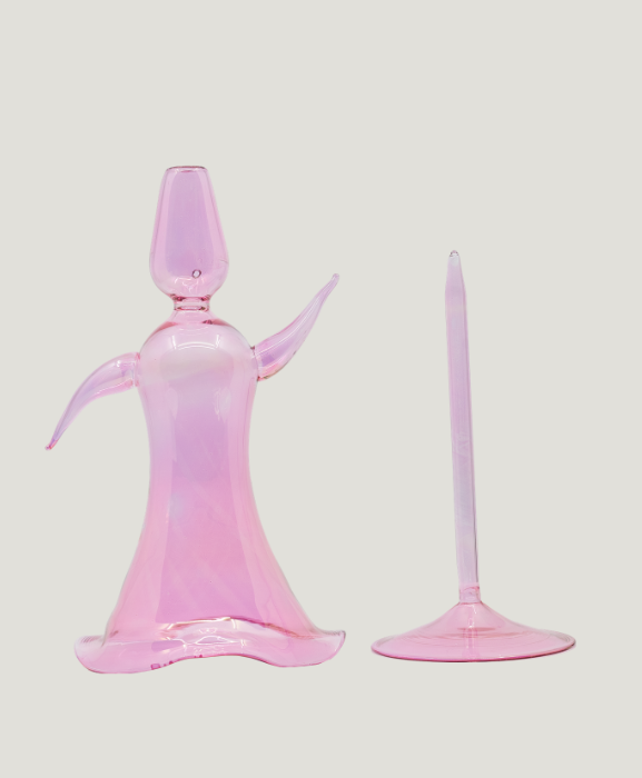 A hand-blown glass dervish inspired by the graceful movement of the whirling dancer. The piece consists of two parts, a sculpted dervish and a base that allows it to gently rotate and dance.